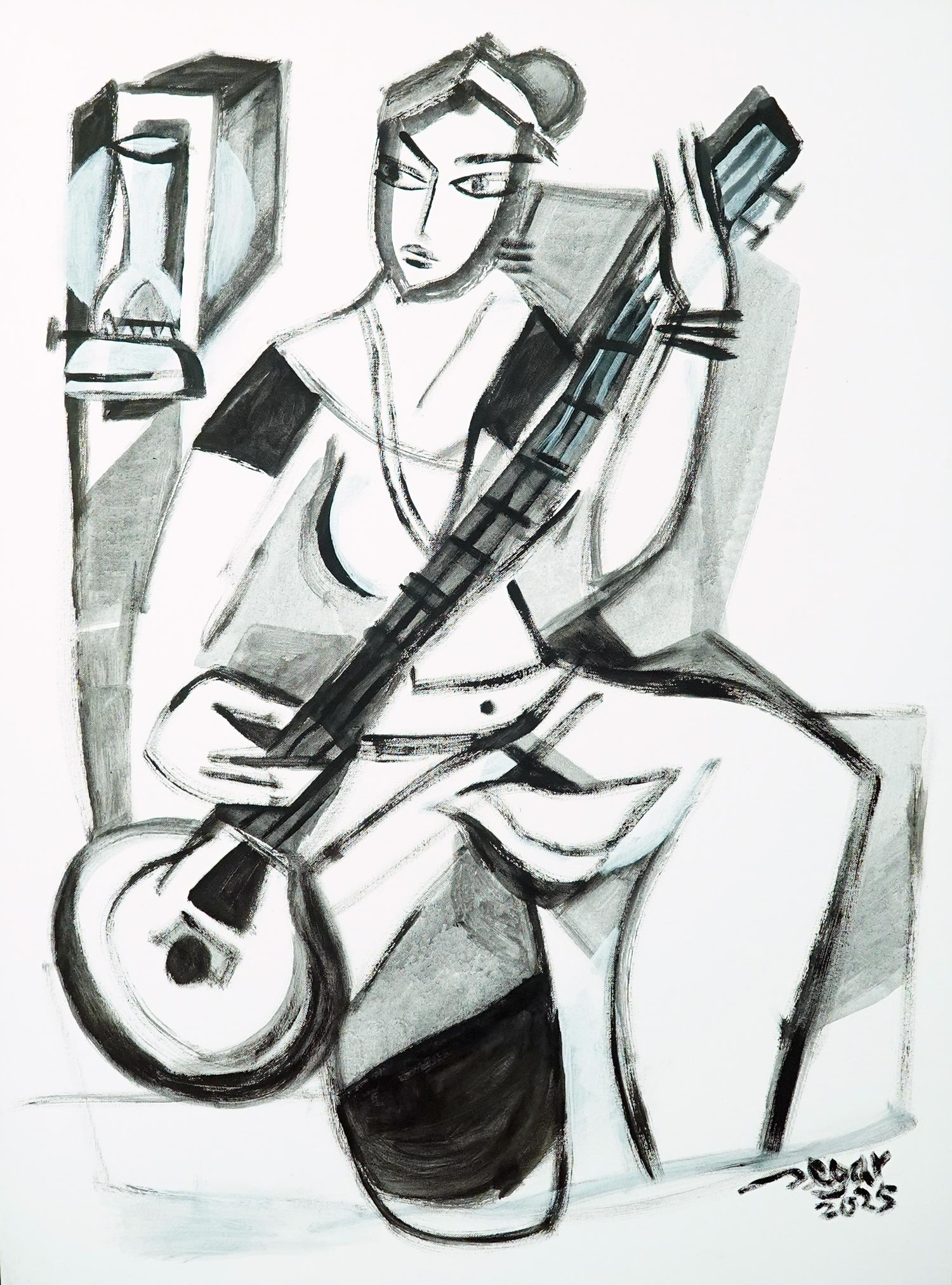 Girl-with-sitar-711 by Raja Segar | IndiGalleria