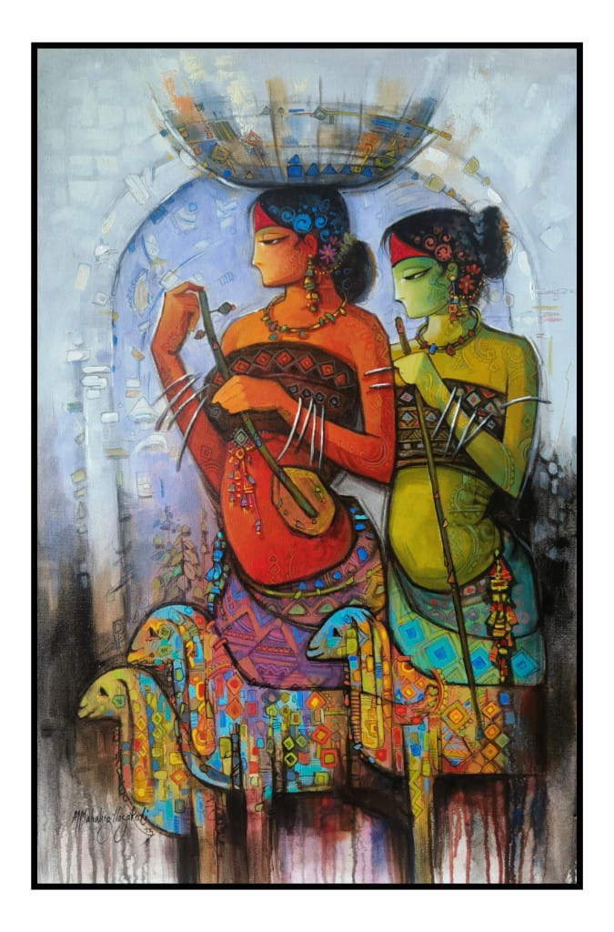 Girls with Goats-2513 by Mahaling R Hosakoti | IndiGalleria