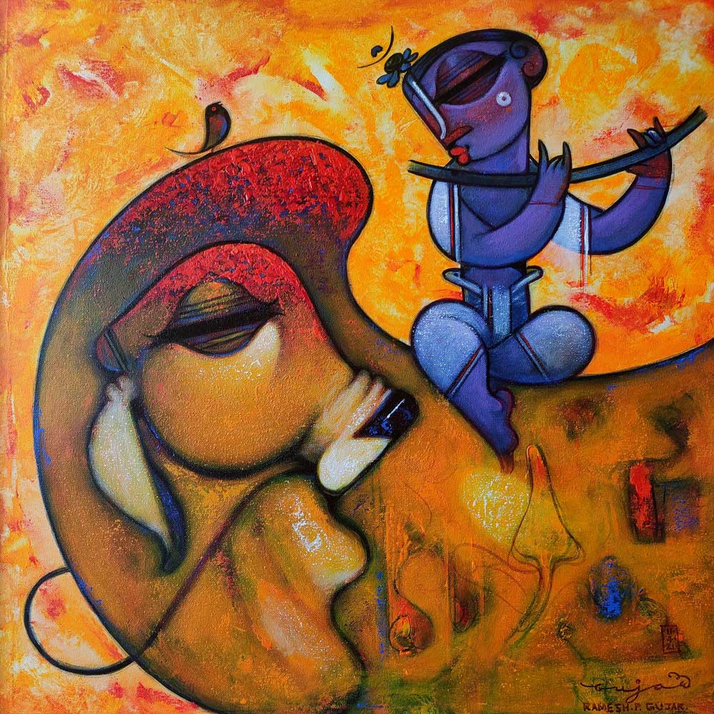 Krishna with cow-746 by Ramesh P Gujar | IndiGalleria