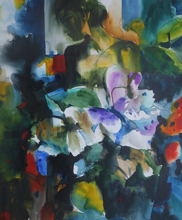 Lady with Flower-1105 by Tapas Basu | IndiGalleria