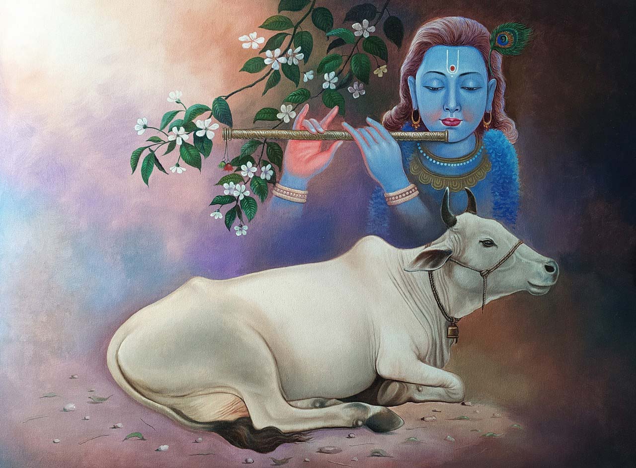 Lord Krishna and Cow-1088 by Gopal Sharma | IndiGalleria