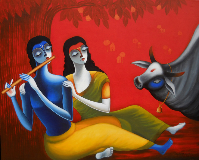 Radha-Krishna-491 by Santosh Chattopadhyay | IndiGalleria