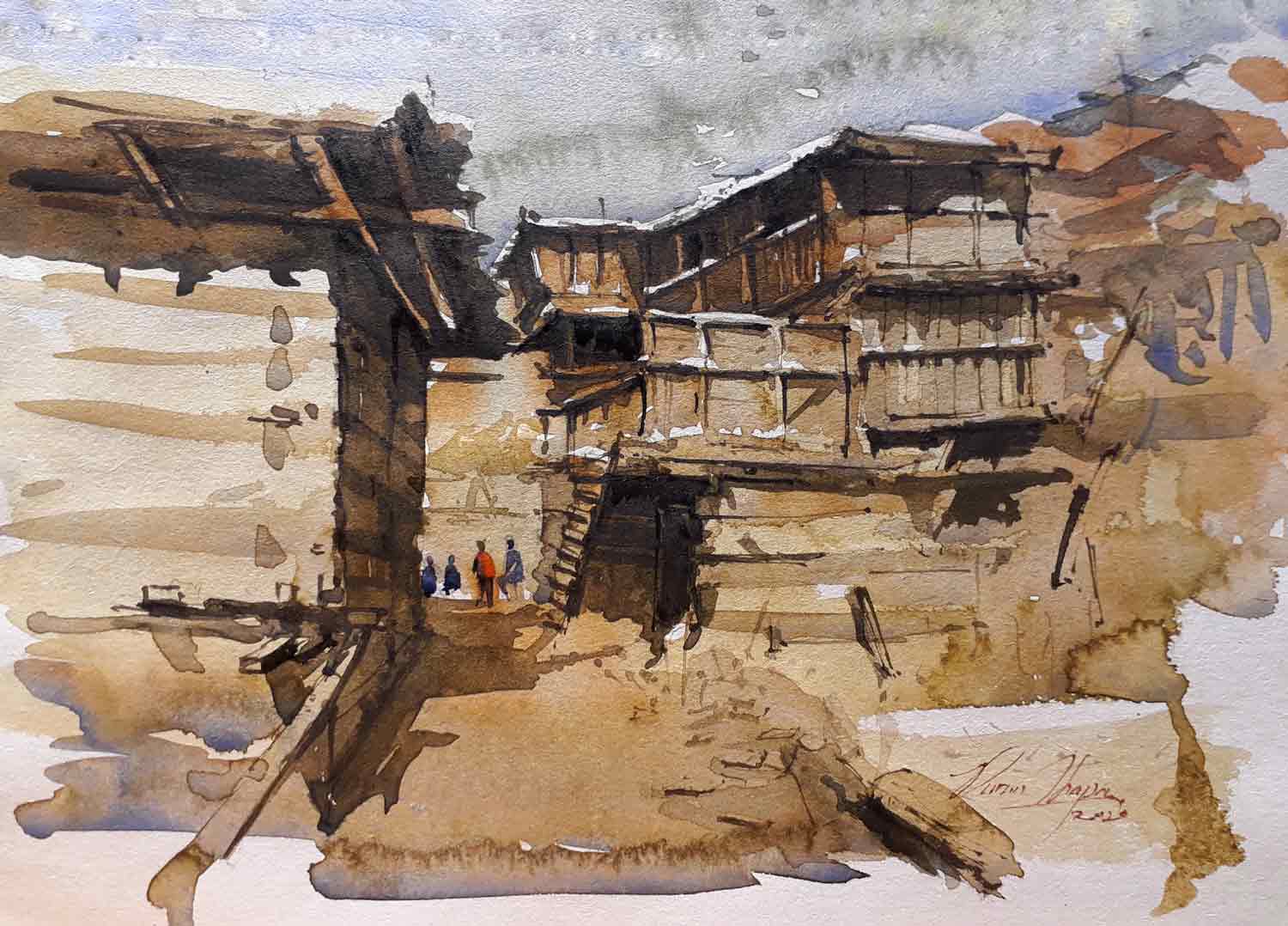 Traditional Himachali House-1042 by Puran Thapa | IndiGalleria